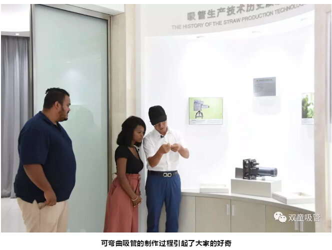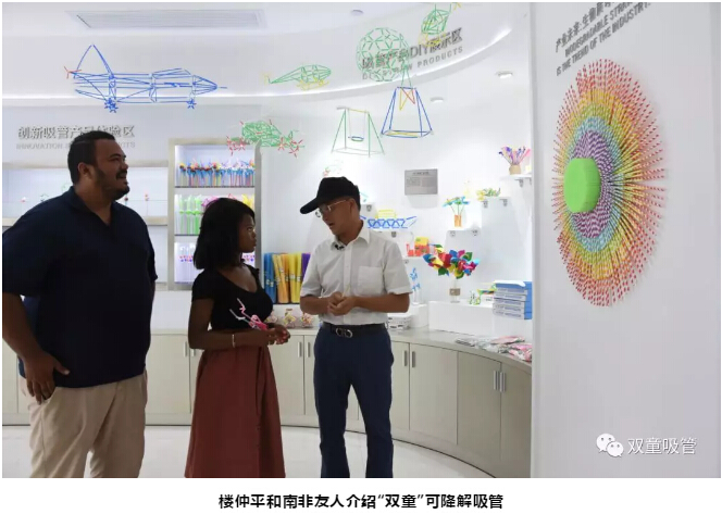 接著,南非友人被“雙童”可降解吸管吸引住了,在聽(tīng)了樓仲平對(duì)“雙童”P(pán)LA生物質(zhì)可降解吸管、“雙童”紙質(zhì)吸管等一番介紹后,他們覺(jué)得十分不可思議,一根吸管不僅可以玩出這么多花樣,還可以做得如此環(huán)保!