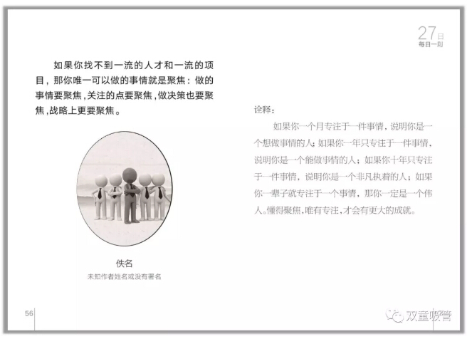 這些文化標(biāo)語,可不是隨便找來掛一掛的哦!它們都是從幾千句名人名言、經(jīng)典好書中擇取篩選出來,并經(jīng)過我們的詳細(xì)注釋,成為“雙童”企業(yè)文化的一部分!