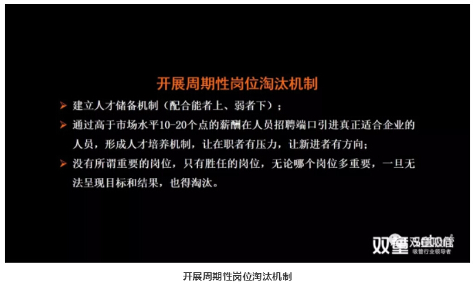 所以,我們要突破固化思維,打破現(xiàn)有平衡,形成以“假設和目標的設定”為衡量尺度的人才競爭機制,讓無能者出局,讓能者居高位,讓優(yōu)秀的員工獲得應有的肯定。
