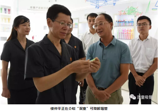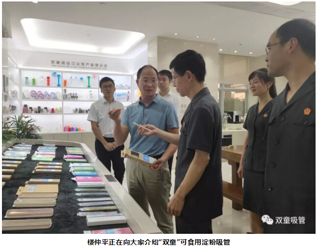 胡公益院長聽完介紹后,對這款綠色環(huán)保的可食用淀粉吸管稱贊連連。