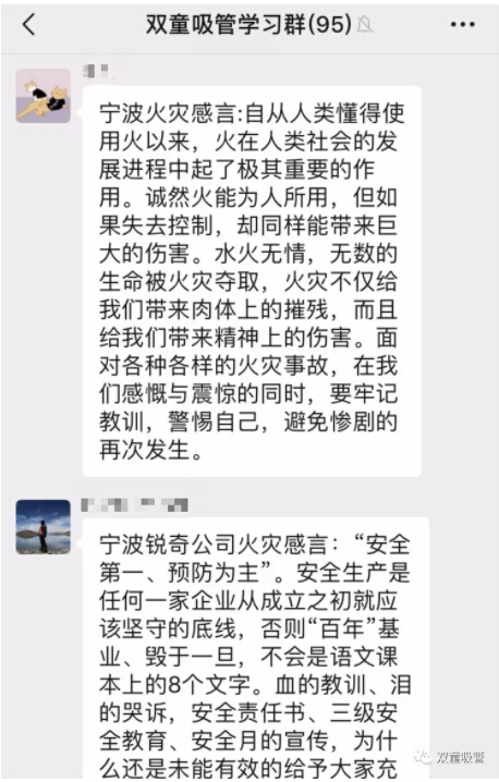 與此同時(shí),針對(duì)此次寧波火災(zāi)的重大事件,“雙童”人也結(jié)合企業(yè)內(nèi)部的安全工作寫(xiě)下了安全感言,從而形成安全生產(chǎn)的高壓線!