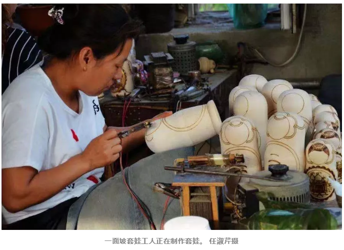 除了勞動密集型生產(chǎn),技術創(chuàng)新也是套娃小鎮(zhèn)迅速發(fā)展的重要原因。如今,為了繼續(xù)穩(wěn)住市場,需要“繡花功夫”才能做好的套娃,又被一面坡的工匠們研究出平涂彩繪、烙畫燙金、磨砂、烤漆等多個工藝品種。