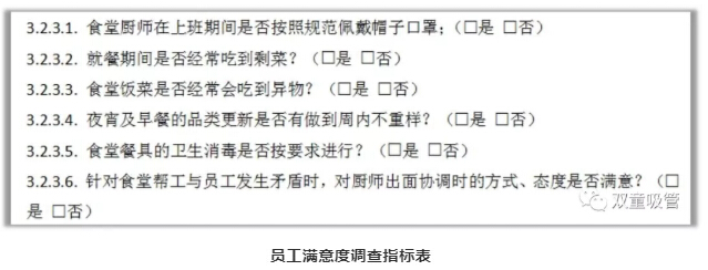在此次后勤團(tuán)隊競賽中,評比依據(jù)主要是以食堂成本控制、食堂安全、衛(wèi)生、質(zhì)量等方面進(jìn)行評比,其中尤為重要的一個指標(biāo)就是員工滿意度,公司每月會進(jìn)行2次員工滿意度調(diào)查,抽取60名員工對食堂工作進(jìn)行評價,以此作為評比依據(jù)。