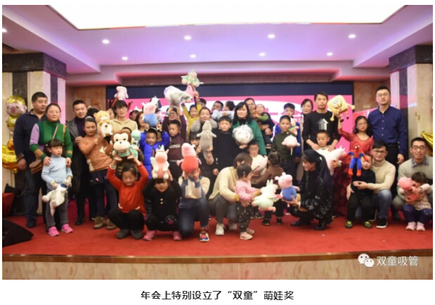 提到“工廠”二字,大家是否都會有種“冷冰冰”的感覺?但在“雙童”卻有一個特別的現象:每到周末或節(jié)假日,廠區(qū)里總會看到許多自由自在玩耍的孩子們;在年會上, 我們還特地給“雙童”寶貝們頒發(fā)了“萌娃獎”,瞧!“雙童”寶貝是不是非常多呢!