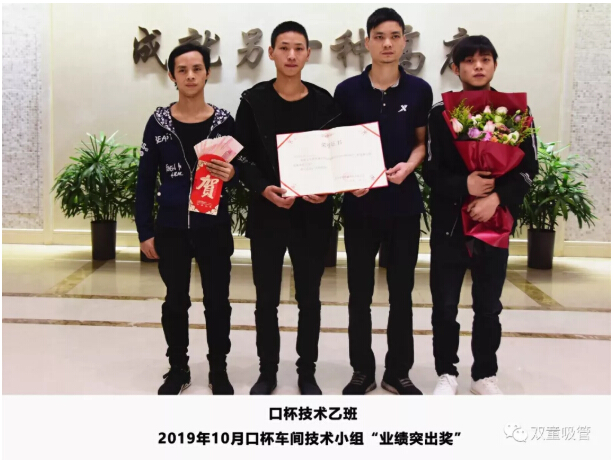 11月8日,在“雙童”隆重召開(kāi)的10月份優(yōu)秀奮斗者表彰大會(huì)上,口杯車(chē)間的兩個(gè)技術(shù)班組獲得了萬(wàn)元獎(jiǎng)勵(lì),成為公司生產(chǎn)班組的標(biāo)桿!