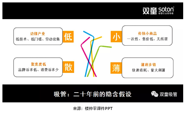 通過打破這些隱含假設(shè),“雙童”轉(zhuǎn)變了二十多年前的經(jīng)驗(yàn)認(rèn)知,找到一個(gè)范式轉(zhuǎn)換以后更為正確的基石假設(shè),從而看到真相,破除所謂“吸管是天底下最難做生意”的認(rèn)知!
