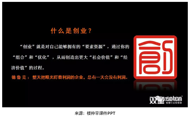 首先,樓仲平引導(dǎo)大家認(rèn)知:何為“創(chuàng)業(yè)”?
