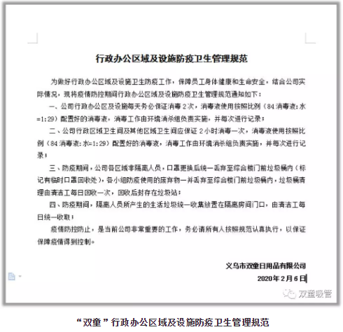 下面,讓我們一起來(lái)看看“雙童”在企業(yè)復(fù)工前做了哪些防控工作吧!