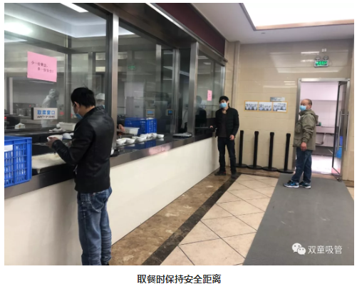 員工們?cè)谂抨?duì)取餐時(shí)需保持安全距離,就餐時(shí)禁止面對(duì)面用餐。瞧!這吃飯架勢(shì)真是吃出了考試的味道,不知道的還以為來(lái)了考場(chǎng)呢!