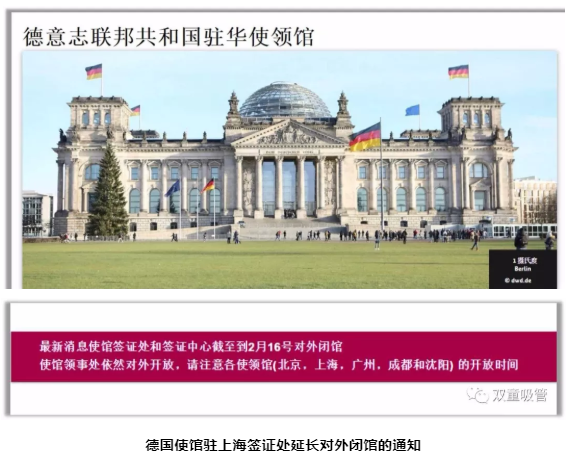 但因春節(jié)期間突如其來的肺炎疫情影響,各國簽證中心都暫停了辦理簽證業(yè)務(wù)并拒絕中國公民入境。1月23日,上海簽證中心通知德國使館駐上海簽證處通知簽證中心截止至2月16日對外閉館,“雙童”的簽證被扣置。