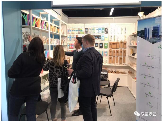 展會期間,盡管中國館的參展商不多,但每天都有絡(luò)繹不絕來自全球各地的參展商到“雙童”展位駐足洽談,對“雙童”的各類吸管、可降解材質(zhì)包裝盒等產(chǎn)品表示了濃厚的興趣。