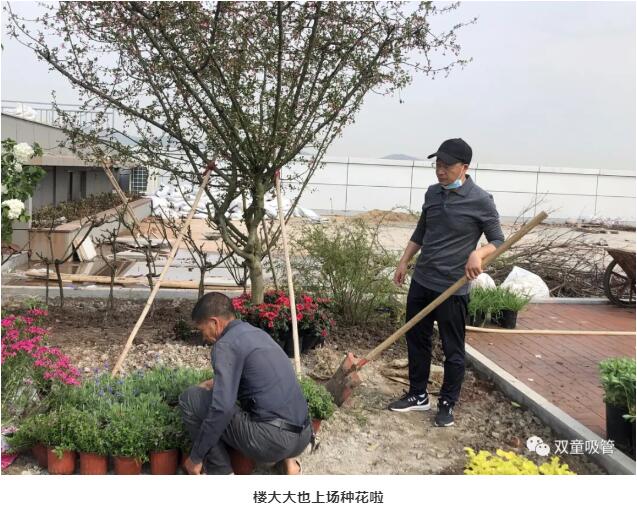 就在前兩天,“雙童”樓仲平采購(gòu)的一大批花卉到啦! “雙童”的男同胞們都化身大力士,將一棵棵花卉搬上了屋頂按位置擺放。