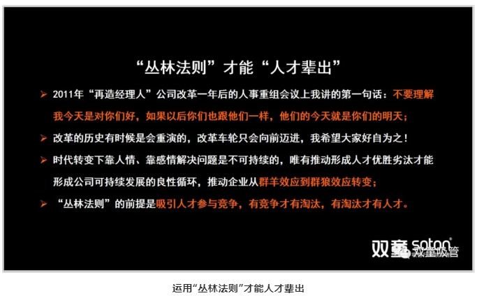 如今時代轉(zhuǎn)變下,靠人情、感情解決問題是不可持續(xù)的,唯有吸引人才參與競爭,推動人才優(yōu)勝劣汰,才能形成公司可持續(xù)發(fā)展的良性循環(huán),推動企業(yè)從群羊效應(yīng)到群狼效應(yīng)轉(zhuǎn)變。所以,公司里的每一個人,也應(yīng)該作出轉(zhuǎn)變,破除慣性、轉(zhuǎn)換思維、提高效率,否則都將在激烈的人才競爭中被淘汰!