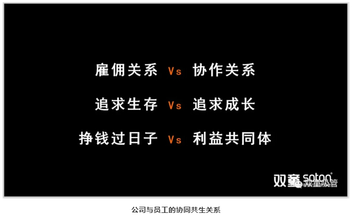 通過以上轉(zhuǎn)變,從而推動“雙童”形成“公司搭建平臺、員工努力創(chuàng)造,企業(yè)和員工共同成長”的協(xié)同共生關(guān)系。