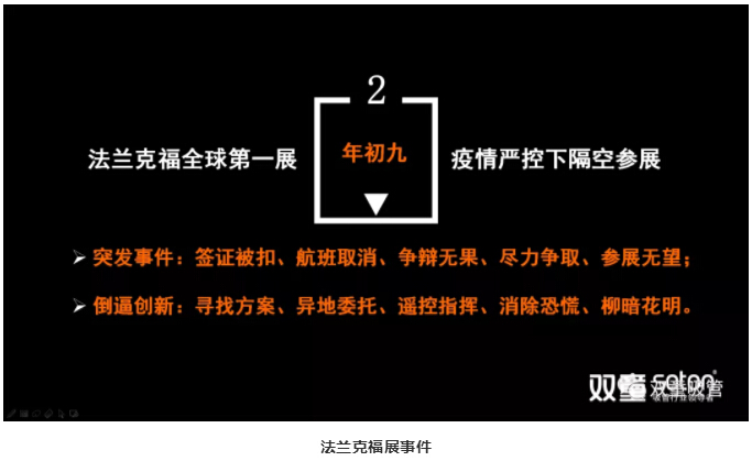 疫情期間發(fā)生的“法蘭克福隔空參展事件”,就是一個很好的組織效率方式轉(zhuǎn)變的例子(點擊藍(lán)字了解詳情)。