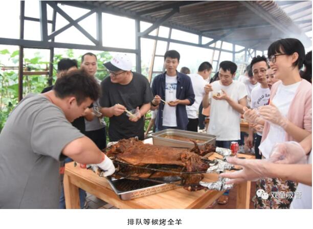 接下來,就是烤全羊的“瓜分”現(xiàn)場(chǎng)!烤全羊剛下烤架,周邊就擠滿了排隊(duì)等候的吃貨們,果真是誰也無法抵擋烤全羊的魅力?。?/span>