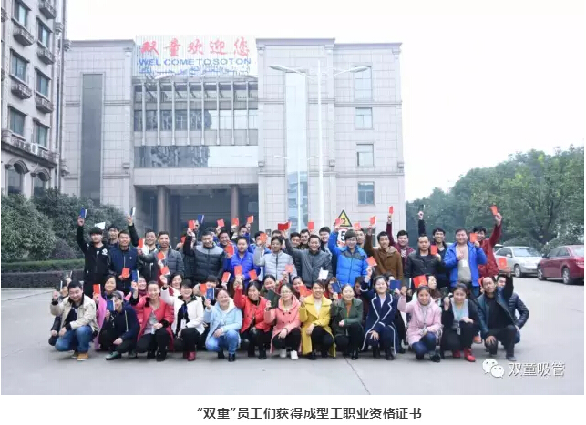 除此之外,我們還為員工組織有針對性的職業(yè)培訓(xùn),讓員工們在本職工作上也有所提升。比如,針對成型工崗位,“雙童”在起草編制了《吸管成型工培訓(xùn)教材》之后,就專門將此本教材形成PPT對員工進(jìn)行培訓(xùn)和講解!如今,“雙童”已有100多位員工考取了成型工職業(yè)資格證書,擁有了國家資質(zhì)認(rèn)定!