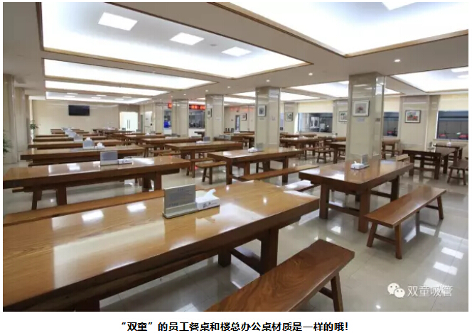 因此,“雙童”的員工餐廳配備了優(yōu)質硬件,每一張餐桌重達四五百斤,由“木中之王”的柚木定制而成,兩三年油漆刷一次就和新的一樣,然而這個餐桌再過50年還會越來越值錢。