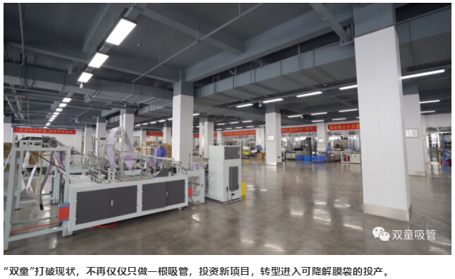 但通過(guò)“雙童”團(tuán)隊(duì)一致的努力,“雙童”購(gòu)置的新設(shè)備陸續(xù)到位,新項(xiàng)目也開(kāi)始投產(chǎn),目前,“雙童”除了能生產(chǎn)各類吸管之外,還能生產(chǎn)可降解保鮮袋、垃圾袋等新產(chǎn)品。