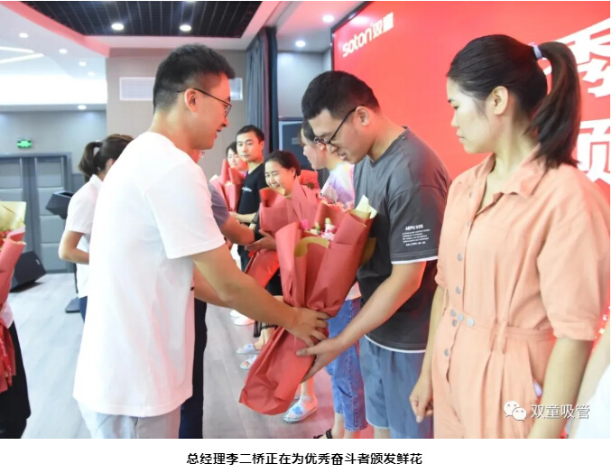 會(huì)上,“雙童”樓仲平及總經(jīng)理李二橋?yàn)閮?yōu)秀奮斗者們頒發(fā)了鮮花、獎(jiǎng)金以及榮譽(yù)證書(shū),并與優(yōu)秀奮斗者們合影留念。