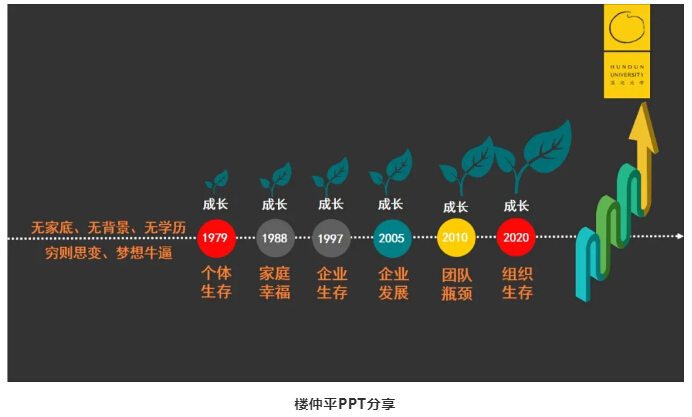 萬(wàn)物之中,成長(zhǎng)最美!樓仲平分享道:“既然創(chuàng)業(yè)者無(wú)法享受成功之美,那就需要突破自己,享受成長(zhǎng)的味道。在近十來(lái)年里,我將最大的精力花費(fèi)在了重構(gòu)與年輕人溝通對(duì)話的鏈接能力上?!?/span>