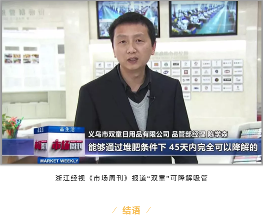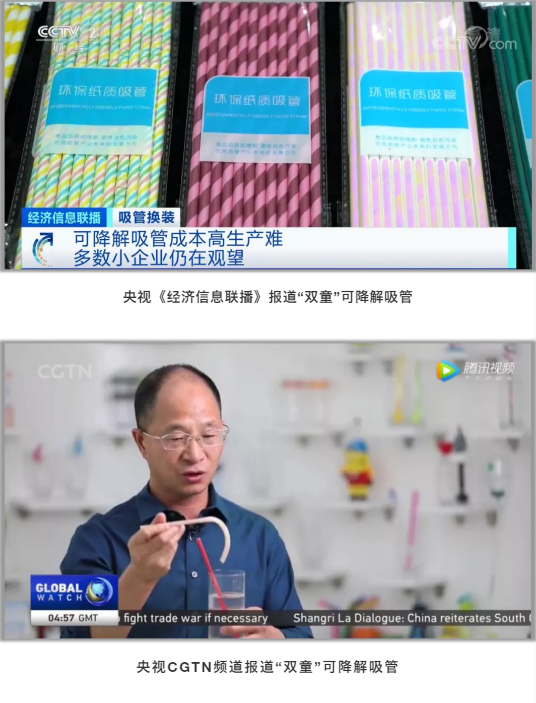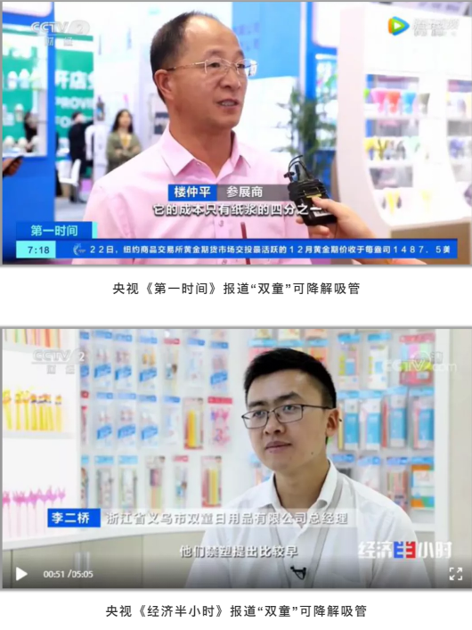 近年來,隨著限塑風(fēng)潮愈演愈烈,媒體目光也紛紛轉(zhuǎn)投到可降解吸管。央視《經(jīng)濟(jì)半小時》、央視《經(jīng)濟(jì)信息聯(lián)播》、央視《第一時間》、湖南衛(wèi)視、浙江經(jīng)視等各類媒體先后采訪報道“雙童”可降解產(chǎn)品,助力社會形成環(huán)保意識,推動可降解產(chǎn)品更快推向市場。
