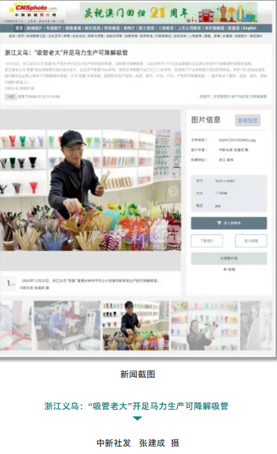 12月23日,中國(guó)新聞圖片網(wǎng)刊登了一系列“雙童”可降解產(chǎn)品照片。在“禁塑令”即將到來之際,“雙童”可降解產(chǎn)品受到越來越多的關(guān)注。下面就跟著吸管妞一起去看看吧!