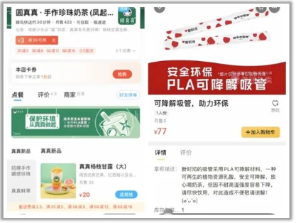 除了星巴克、麥當(dāng)勞、喜茶等幾個月前甚至去年就開始行動的品牌,這陣子剛換上環(huán)保類吸管的各家茶飲店,線上線下免不了一番宣傳和解釋。打開外賣App,不少茶飲店在頁面顯眼處打出了告示:“愛護(hù)環(huán)境從一根吸管做起”“可降解吸管,助力環(huán)?!?,還有溫馨提醒:“紙吸管長期浸泡硬度易下降,請盡快飲用”“小可愛們插吸管時需稍用力,且保護(hù)好自己的手哦”“我們會盡快升級技術(shù)和提升飲用體驗(yàn)”……