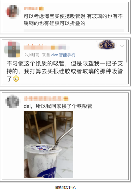 這邊,茶飲店和吸管生產(chǎn)企業(yè)摸著石頭過河,還在尋找傳統(tǒng)塑料吸管的“完美替代品”;那邊,一些年輕人已開始尋找“禁塑令”下的快樂喝奶茶方式,像是網(wǎng)購可重復(fù)使用的吸管。“不習(xí)慣紙吸管,但限塑這件事一定要支持,打算去買根硅膠或玻璃吸管”“機(jī)智如我,連夜下單不銹鋼吸管……”