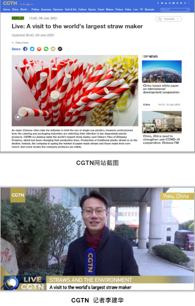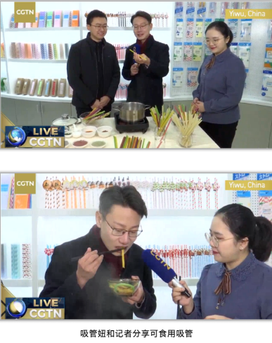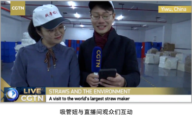 無獨有偶,央視CGTN頻道在上周五來到“雙童”,針對這次沸沸揚(yáng)揚(yáng)的“禁塑令”話題展開了為時一個多小時的現(xiàn)場直播采訪,在CGTN所有海內(nèi)外官方新媒體平臺上現(xiàn)場展示中國吸管博物館中的近千種吸管產(chǎn)品,并聚焦在“雙童”的各類環(huán)保吸管上進(jìn)行了重點報道!