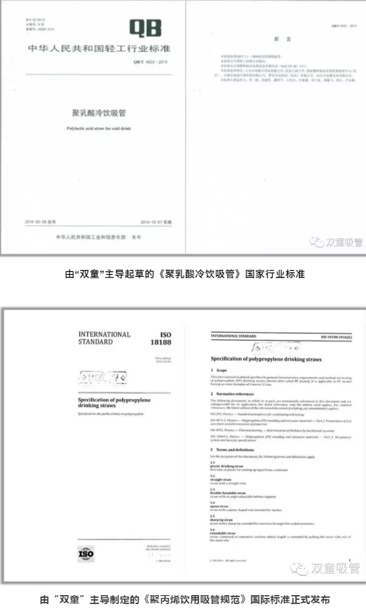 所以,在大多數(shù)人還沒有意識到標(biāo)準(zhǔn)的重要性時,“雙童”在20多年前就意識到了。從1997年開始,“雙童”先后主導(dǎo)起草了《聚丙烯飲用吸管》的行業(yè)標(biāo)準(zhǔn)、浙江標(biāo)準(zhǔn)、國家標(biāo)準(zhǔn)、ISO國際標(biāo)準(zhǔn)等國家級標(biāo)準(zhǔn)的編制工作,從而牢牢掌握住全球吸管行業(yè)發(fā)展的脈搏,獲得了全球吸管產(chǎn)業(yè)的標(biāo)準(zhǔn)制定權(quán)和行業(yè)話語權(quán)!