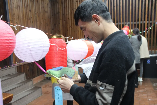 “我猜對啦!”、“我也終于猜對啦!”猜對燈謎的員工正在井然有序地換取獎品,每一位拿到獎品的人,喜悅之情溢于言表,整個活動現(xiàn)場充滿了歡聲笑語。不到一個小時,燈謎鏈上一百多條燈謎便被大家一 一猜中了。