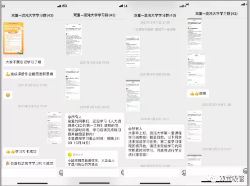 一開始,混沌大學(xué)義烏學(xué)習(xí)中心周上班主任首先向同學(xué)們公示了本期的學(xué)習(xí)情況。作為團(tuán)報企業(yè),混沌義烏會組建線上學(xué)習(xí)群,每月會在群內(nèi)發(fā)布學(xué)習(xí)任務(wù),督促同學(xué)們學(xué)習(xí)打卡,并和企業(yè)學(xué)習(xí)領(lǐng)導(dǎo)小組負(fù)責(zé)人共同評選出優(yōu)秀作業(yè),并給予學(xué)分獎勵。