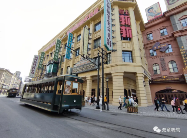 吃飽喝足之后,開始游玩第二站——夢(mèng)外灘。聽導(dǎo)游小姐姐介紹,這里是以二十世紀(jì)20年代至40年代的老上海為原型噠。