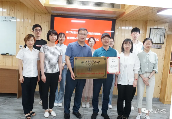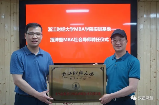 雙童團隊和浙江財經(jīng)大學(xué)調(diào)研團合影 事實上,多年來“雙童”始終積極參與產(chǎn)學(xué)研融合的工作,已與浙江大學(xué)、浙江師范大學(xué)、浙江理工大學(xué)和江西財經(jīng)大學(xué)等多所國內(nèi)高校保持密切合作關(guān)系,為校企共同發(fā)展提供資源共享平臺,為高水平人才培養(yǎng)提供了有力支撐。 浙江大學(xué)創(chuàng)新創(chuàng)業(yè)教學(xué)實踐基地牌匾 浙江師范大學(xué)MBA企業(yè)實訓(xùn)基地牌匾