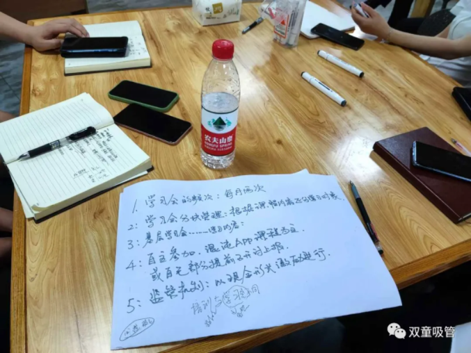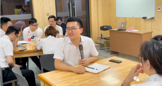 樓仲平的分享,引發(fā)了大家的共鳴和一致認可。因此,雙童的小伙伴們針對五個提問,分組對學習會機制進行了分析討論(自營體長組,生產(chǎn)中高層組,品管研發(fā)組,行政組,銷售人員組)。