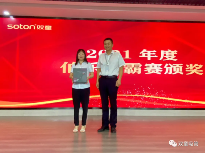 在2021年第二季度員工表彰大會上,“雙童”總經(jīng)理李二橋為在一線辛勤奮斗的“雙童人”頒發(fā)了榮譽證書和豐厚的獎金。