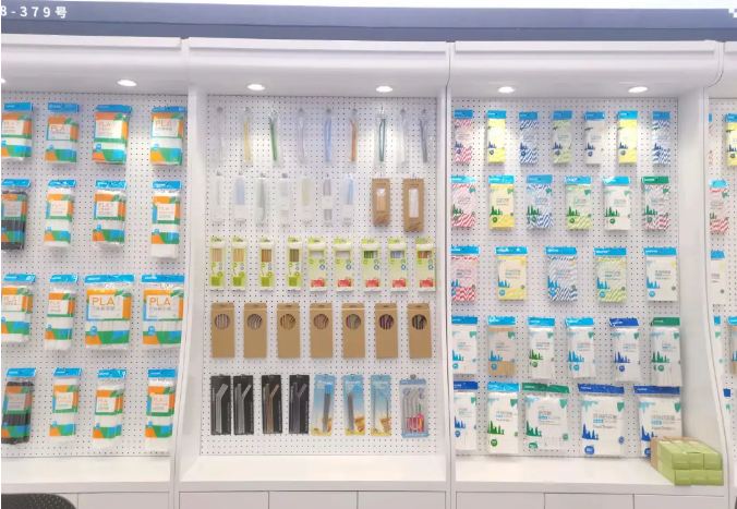“雙童”展位上琳瑯滿目的吸管展品,大有濃縮版吸管博物館的架勢(shì)!從傳統(tǒng)吸管到創(chuàng)意吸管,從紙吸管到可降解吸管,各式各樣的產(chǎn)品已準(zhǔn)備就緒,就等著參展客戶們來“翻牌子”啦!