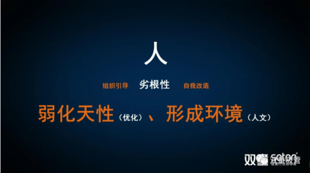 之所以人性無所謂善惡,在環(huán)境的影響下可以呈現(xiàn)“一體兩面”,也可以“相互轉(zhuǎn)換”,既可以為善,也可以為惡。在理解了人性底層的原理后,作為組織的經(jīng)營者,就能夠理解到組織成員必須通過引導(dǎo),讓成員自我認(rèn)知、自我改造,從而引導(dǎo)成員在認(rèn)知善惡之間獲得正向轉(zhuǎn)換,從而獲得持續(xù)的成長,這也是組織管理工作最大的功能所在。
