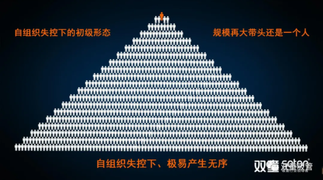 緊接著樓老師提出了自組織邊界缺陷的規(guī)模問題:由于自然人都有一個人際關(guān)系的強(qiáng)關(guān)系限制,人際強(qiáng)關(guān)系的自然人數(shù)一般只能維系九個人,最多也不超過十五人。由此可以理解,企業(yè)組織關(guān)系的個體連接會受自組織邊界規(guī)模的限制,十五個自組織形成的規(guī)模顯然無法滿足企業(yè)的發(fā)展訴求,那么該如何突破人際強(qiáng)關(guān)系去獲得更多的連接呢?