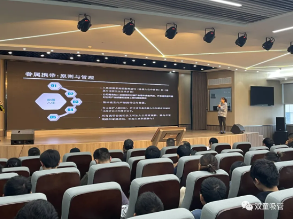 大會伊始,“雙童”后勤科長馬夢麗為大家分享了餐廳秩序、廠區(qū)衛(wèi)生和寢室管理細(xì)則,讓大家知曉在“雙童”的衛(wèi)生注意事項(xiàng),引導(dǎo)員工們共同維護(hù)“雙童”的美好環(huán)境!