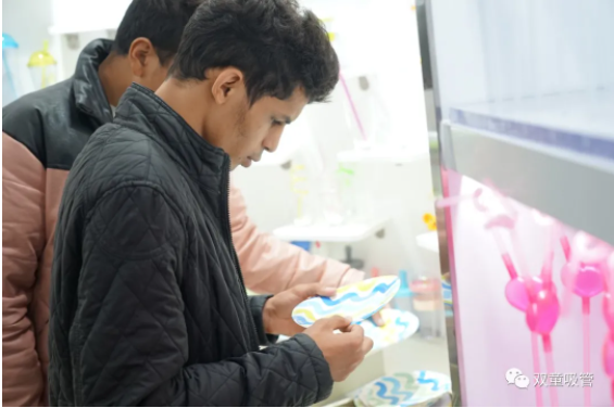 其中,在參觀創(chuàng)新吸管產(chǎn)品體驗(yàn)區(qū)時(shí),動(dòng)物造型的卡通吸管、內(nèi)嵌風(fēng)輪會(huì)不停旋轉(zhuǎn)的風(fēng)車吸管、眼鏡吸管、小鳥吸管、party吸管……琳瑯滿目、形態(tài)各異的吸管產(chǎn)品讓中外師生們的驚嘆聲此起彼伏,紛紛表示如果不是親所見,很難想象一根吸管竟有這樣的創(chuàng)造力,“雙童”簡直是中國版“Google” !
