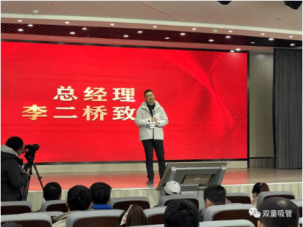 大會伊始,“雙童”總經(jīng)理李二橋就向在場每一位辛勤奮斗的員工們表示感謝,并提出了“雙童”后續(xù)的工作規(guī)劃,為員工爭取了更多權(quán)益與巨額獎勵,給予了在場員工巨大的想象空間。