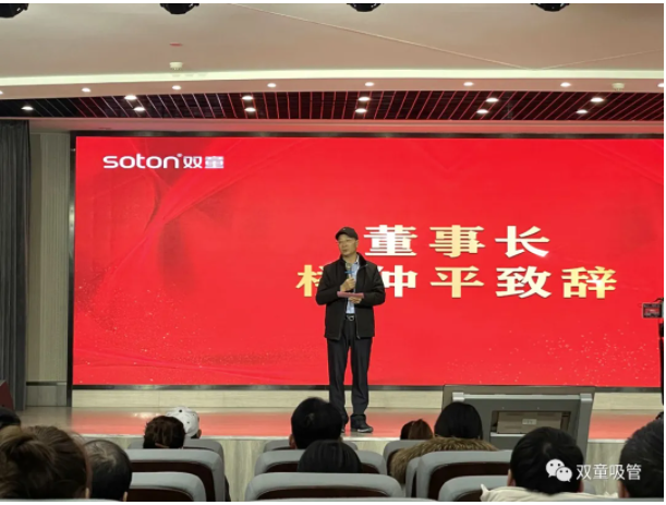 大會上,“雙童”董事長樓仲平和“雙童”總經(jīng)理李二橋,向在場每一位辛勤奮斗的員工們表示了感謝,并提出了“雙童”后續(xù)的工作規(guī)劃,為員工爭取了更多權益與巨額獎勵,給予了在場員工巨大的想象空間。