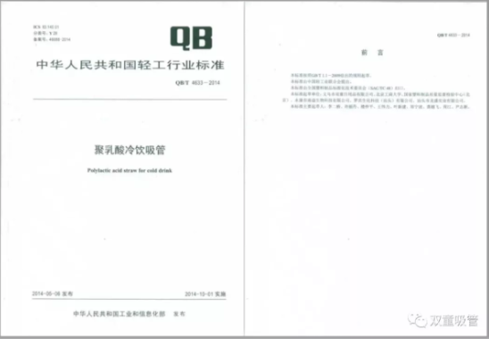 2014年由雙童獨(dú)家主導(dǎo)起草的輕工行業(yè)標(biāo)準(zhǔn)Q/BT4633-2014《聚乳酸冷飲吸管》審核通過,并于同年10月1日正式實(shí)施。