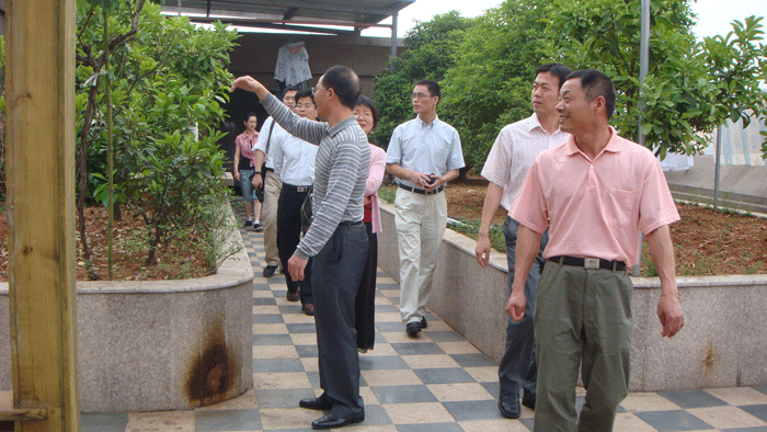上圖:董事長(zhǎng)樓仲平陪同余勁松副司長(zhǎng)一行參觀考察屋頂花園