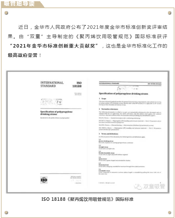 由“雙童”主導起草的《聚乳酸冷飲吸管》國家行業(yè)標準