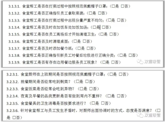 員工滿意度調查工作促使后勤餐飲團隊在日常工作中進行自我監(jiān)督,賦予了員工對飲食的選擇權和提議權,同時設立強硬的規(guī)則進行維護和保障,充分說明了“雙童”人性化的背后也是機制!