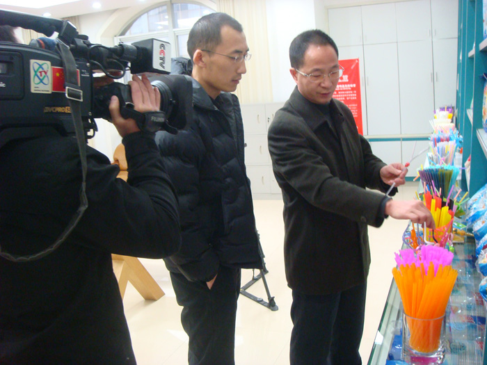 上圖:《中國(guó)財(cái)經(jīng)報(bào)道》欄目組記者到我司吸管生產(chǎn)車(chē)間采訪拍報(bào)