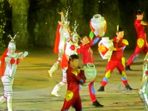 晚上6點(diǎn)半,夢幻谷最為著名的歌舞表演《夢幻太極》開始了,表演場館內(nèi)人頭攢動(dòng)、座無虛席。隨著一聲悠長的音樂,如夢似幻的舞臺(tái)上,各式各樣的美麗舞蹈輪番上演,一年四季的場景接連變換,我們的座位席上不斷爆發(fā)出陣陣熱烈的掌聲。